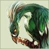 | Черты | Птица имеет крайне сложный характер: ревнива, к незнакомцам недоверчива, может больно укусить непонравившегося ей человека (оборотня, вампира, etc) или же издать низкий переливчатый крик. Любит сладости в виде засахаренных насекомых, а также полеты в дождливую или темную холодную погоду. |