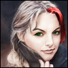 | Внешний вид | Светло-русые волосы стянуты сзади черной лентой с красным узором, напоминающим оскаленную пасть дракона, - все, кроме пряди слева, выкрашенной в красный. Зеленые глаза с золотистым ободком вокруг зрачка, бледная кожа, правильной формы нос, несколько тонкие губы. Рост 165 см, недостаток в росте в очень редких и торжественных случаях компенсируется высокими каблуками. Под мантией немарких тонов с глубокими карманами носит сапоги из зеленой замши, черные узкие джинсы и черный кожаный пиджак, узор на спине повторяет узор ленты. Ногти на руках обкусаны. |